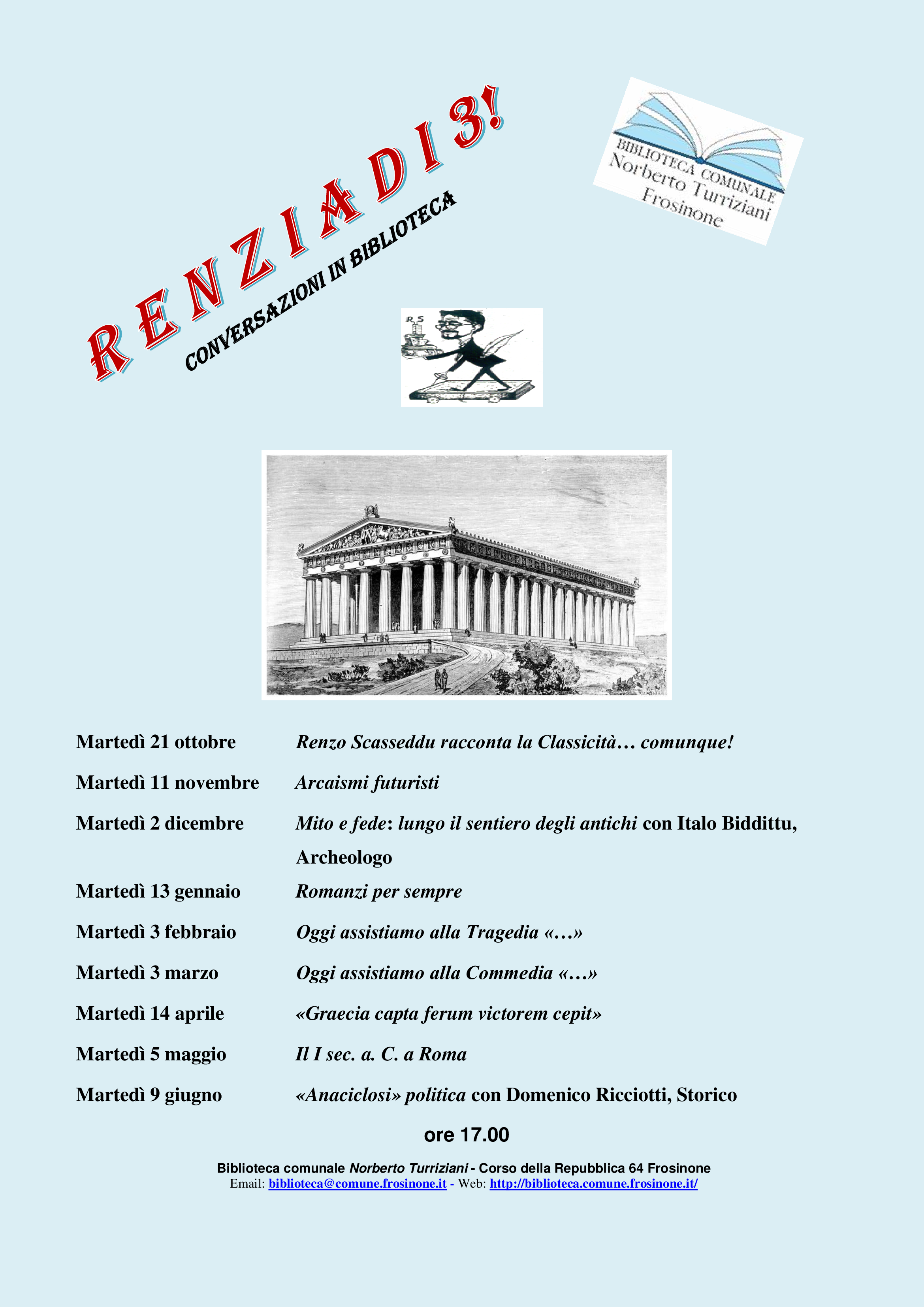 Inizia martedì 21 ottobre alle ore 17.00 la terza edizione di "Renziadi conversazioni in biblioteca".